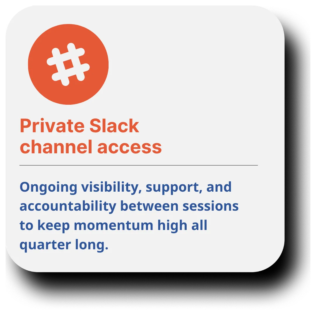 Weekly Zoom calls, a shared Slack channel & structured tracking create real visibility and follow-through.